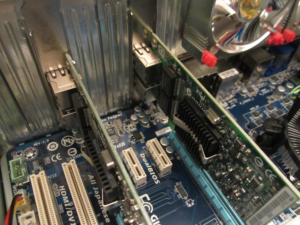Getting some 10 Gbps networking cards would have been awesome, but they’re rather expensive. Another way to do it is combining (bonding/teaming) multiple 1 Gbps links. I found some suitable NICs for sale at Ebay.